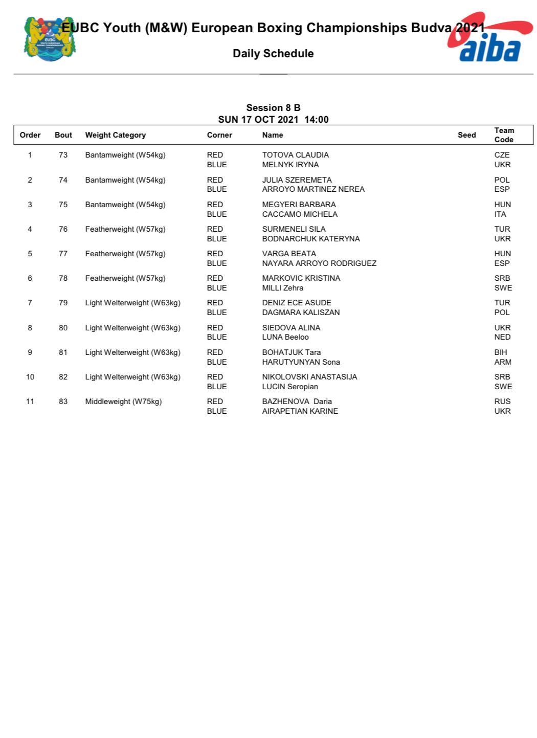 Vandaag komt Luna Beeloo als tweede Nederlandse bokser in actie op het EK Jeugd in Montenegro. Gisteren beet Corrie van de Pavert succesvol het spits af voor het Nederlands team. Vandaag is het aan Luna de beurt om haar krachten te meten met de Oekraïense Siedova Alina (63 kg). Rond 16:00 uur komt Luna de ring in en dat zal via een livestream te volgen zijn. Zet hem op Luna!